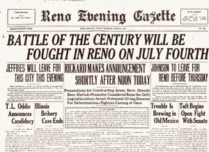 Johnson fought four white hopes in 1909, racking up three wins and a draw. The search kept coming back to Jeffries. Month after month the pressure on the former champion grew. Finally Jeffries agreed to leave his alfalfa farm to fight Johnson. After other states declined to host the fight—boxing was still considered sleazy, and it was illegal or could not legally be done for money in most states—the fight was set for Reno on July 4, 1910. (Acting Nevada Governor George Pyne had given a quick green light to the bout.) Reno was given just 14 days notice.