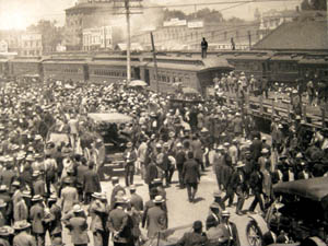 Reno High School senior Clark Webster wrote in his diary, “Sunday; July 3, 1910: Had a corker of a day yesterday, but not quite as bad as last year. People have been piling in here on every train the last 5 days and the special trains are coming in to-day. While I was down town this afternoon, three specials came in, one from Spokane and the other two from California. The Thomas Cafe has opened another lunch counter and I had to take a lot of stuff there in the last week. I also delivered a ton of spuds to the Thomas last Friday. We work tomorrow morning to supply the restaurants.”